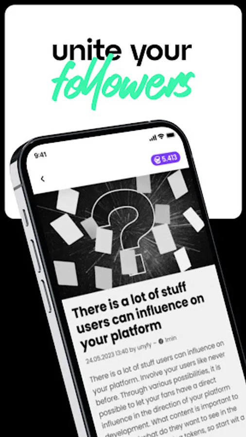 Launch your own premium community, distribute your own creator token, create premium content and experiences, drop NFT collections, and engage your fans with votings, AMAs, and more. At its core, the app is built to maximize the connection between you and your fans.