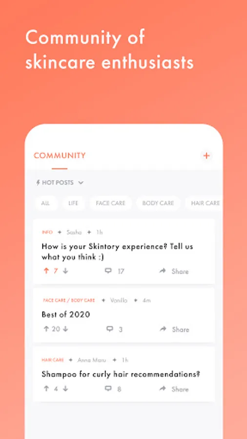 Welcome to Skintory a place to organize and manage your cosmetics inventory, chat with like-minded skincare enthusiast and find perfect products for your best skin