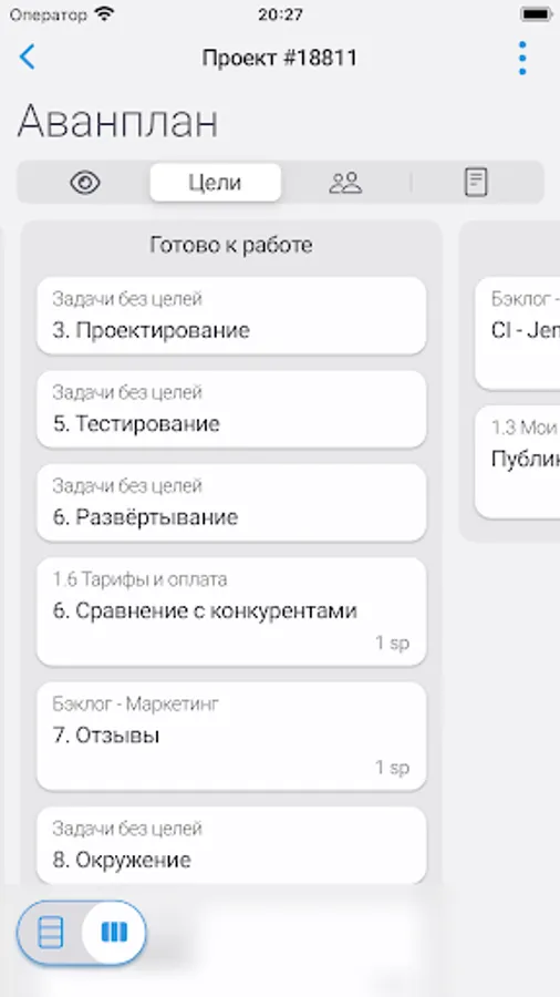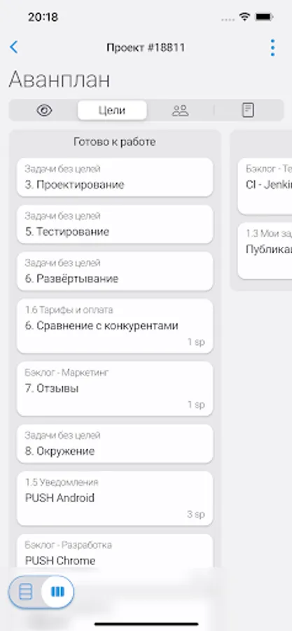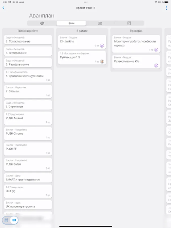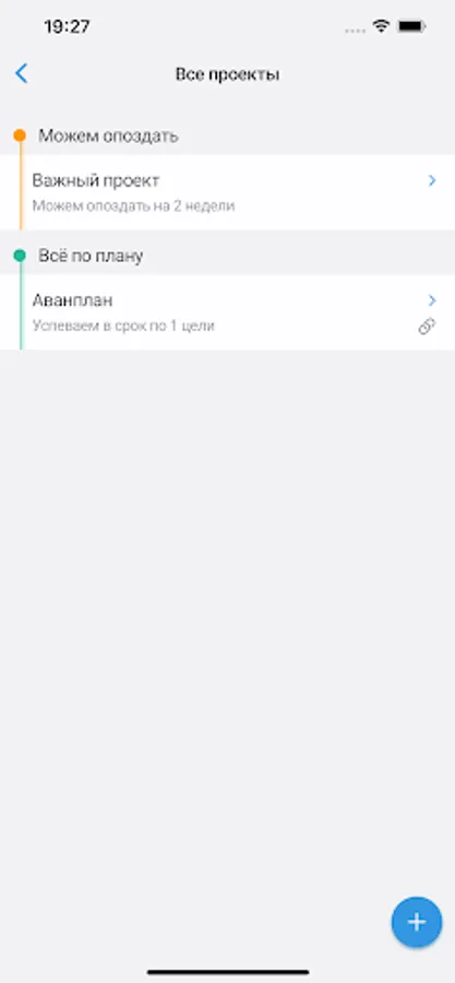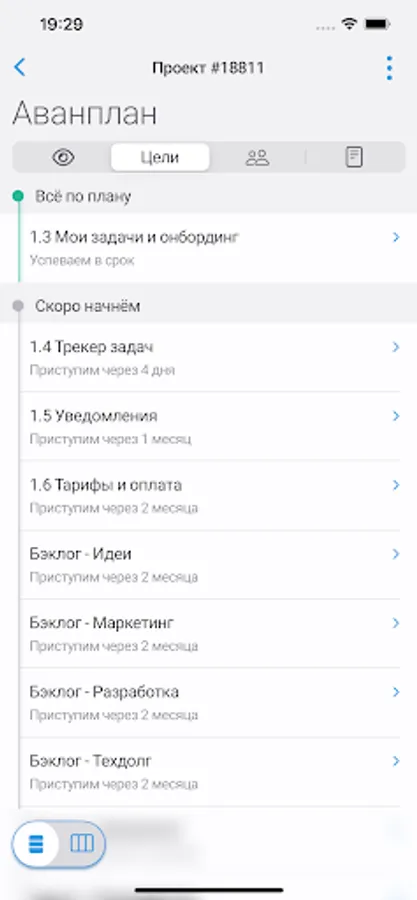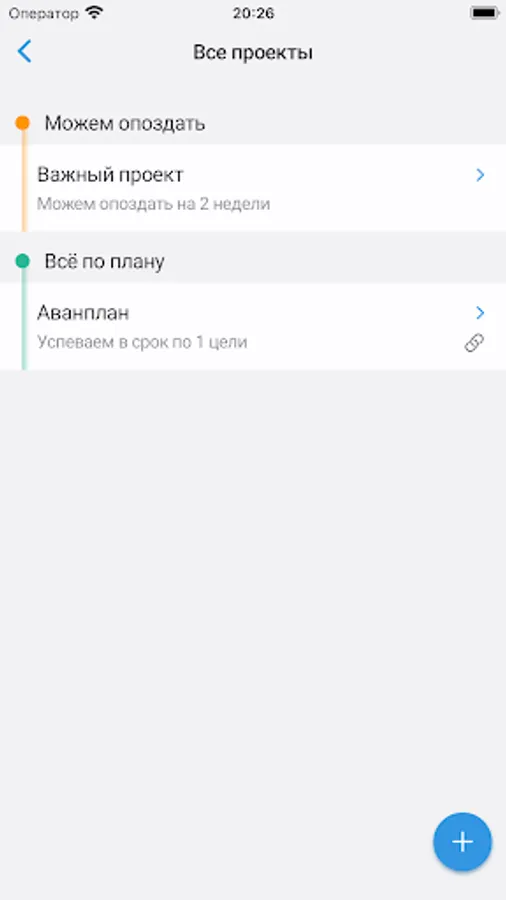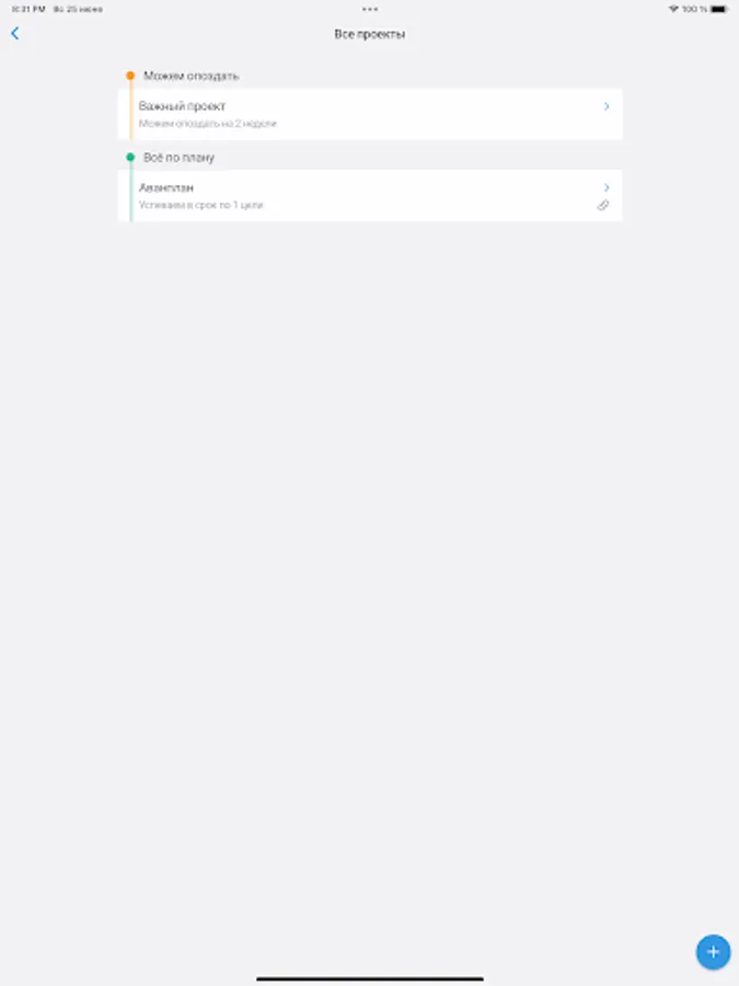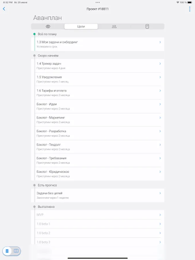 The app is designed to gathering information about the status of projects, consisting of goals and tasks. In the case of personal use, this is an improved analogue of the TODO-app or task-tracker.
