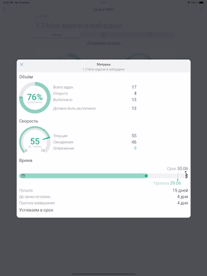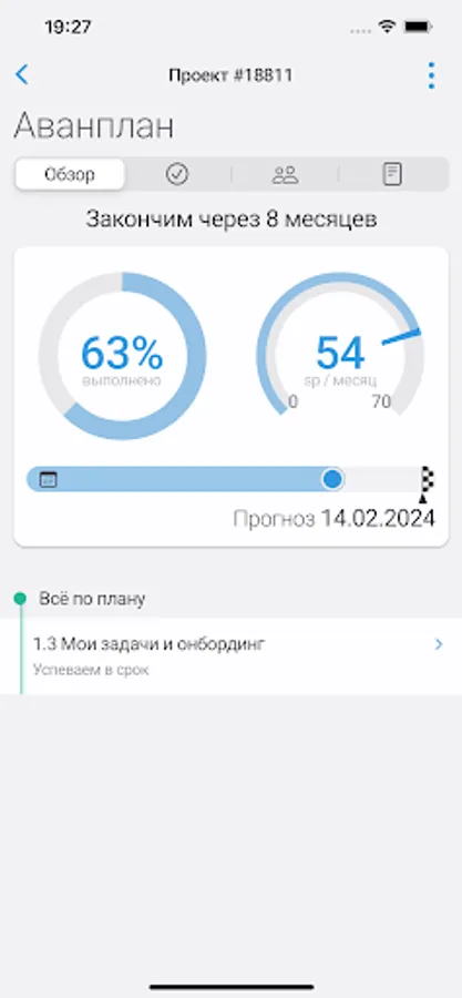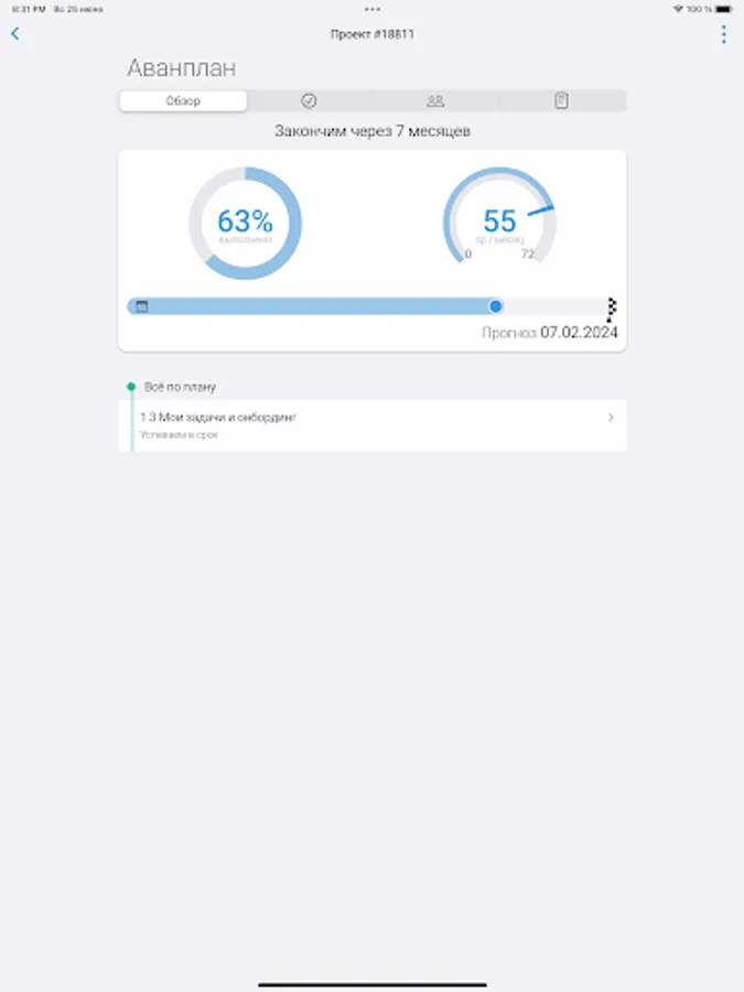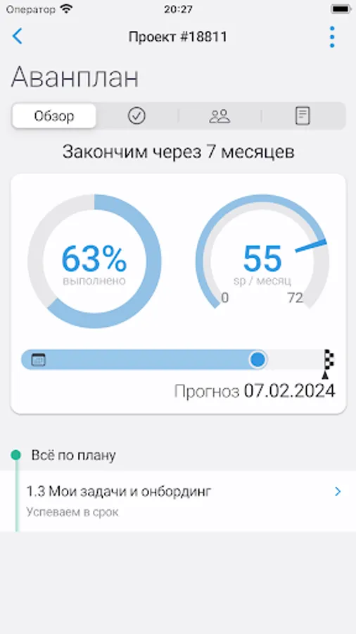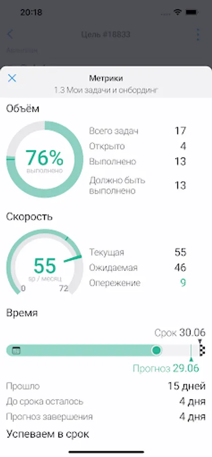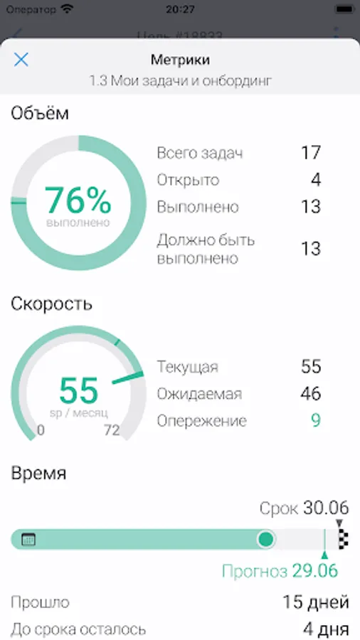 - Displaying information about the speed of execution and the amount of work done for projects in the form of a dashboard.
