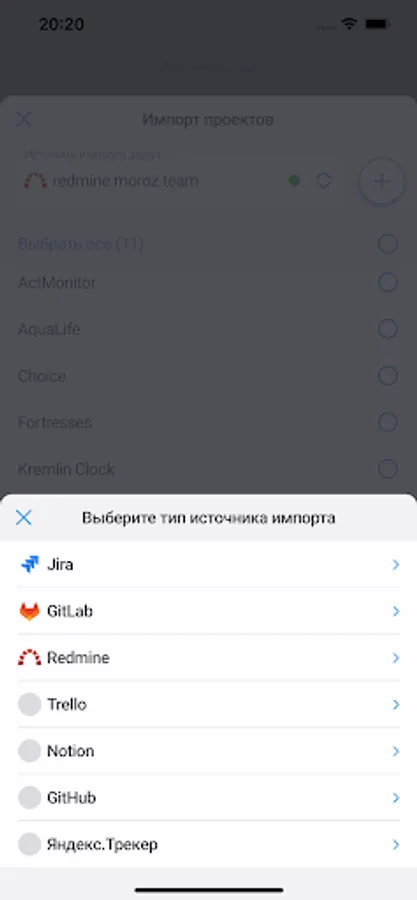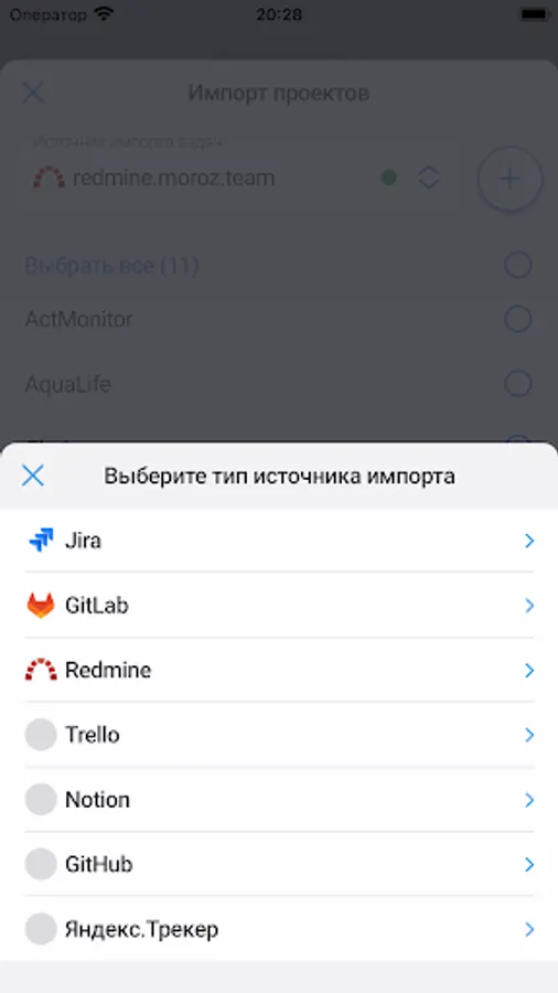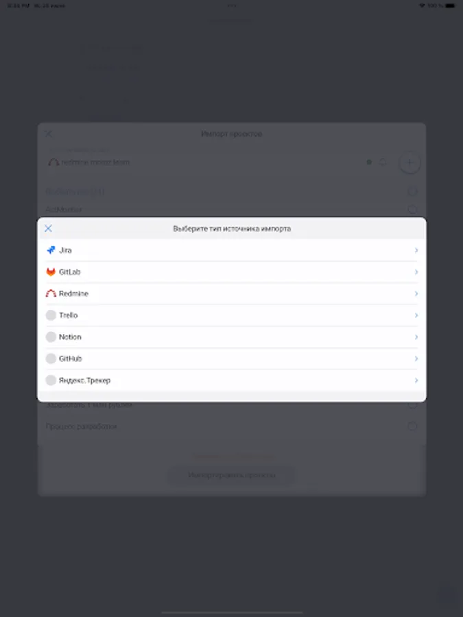 You can import information of projects from popular tasks-trackers (Jira, Gitlab and Redmine).
