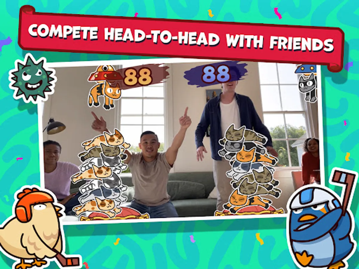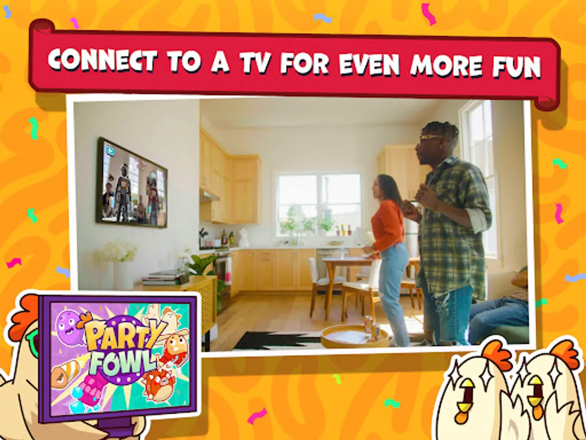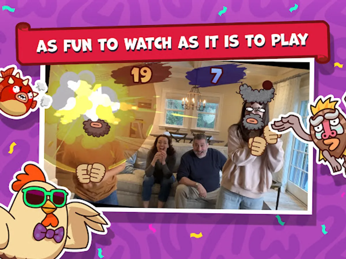 Party Fowl is also super simple to set up. Just set your device down so that you and your opponent are visible in the front-facing camera. For a more immersive experience, screencast your device to a TV.