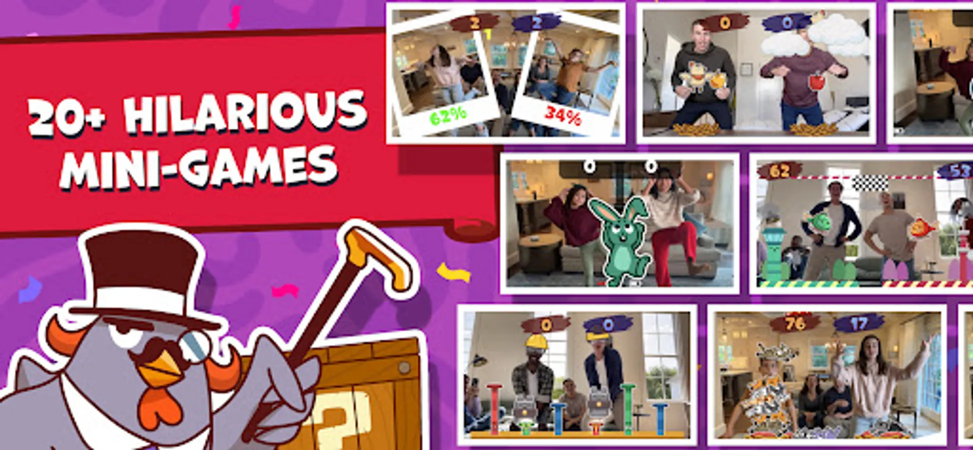 With a large collection of mini games that’s constantly expanding, everyone has a chance to reign supreme or make a total fool of themselves. Each game is as goofy and chaotic as the next. Whether it’s Cat Stack, Viking Volleyball or Cookie Catastrophe, Party Fowl has something for everyone!