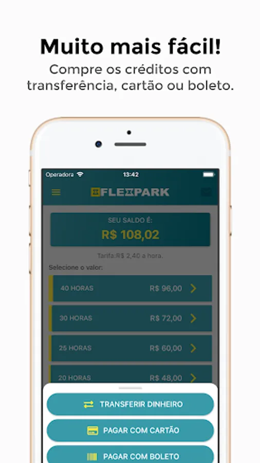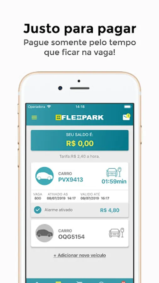 • When parking, tell the application to vehicle plate, previously registered and the vacancy number that it occupies.