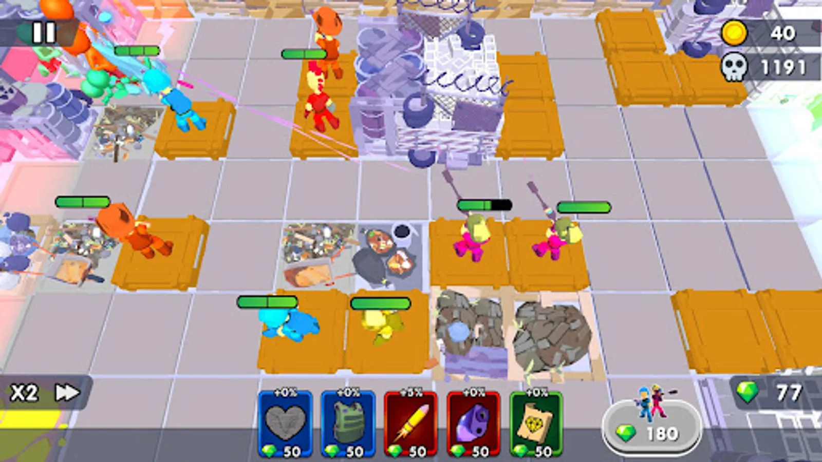 Replenish your squad with new fighters to hold back the onslaught of Zombies. Merge single fighters to unlock their abilities. Don't let the zombies come close to you, otherwise your fighters will take damage. Beware of Zombie Bosses, they are very hardy!