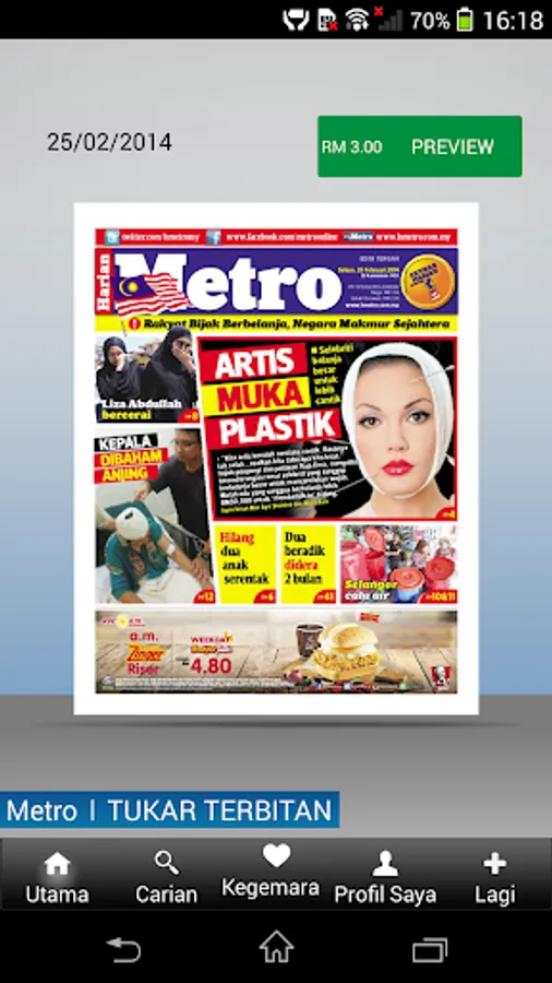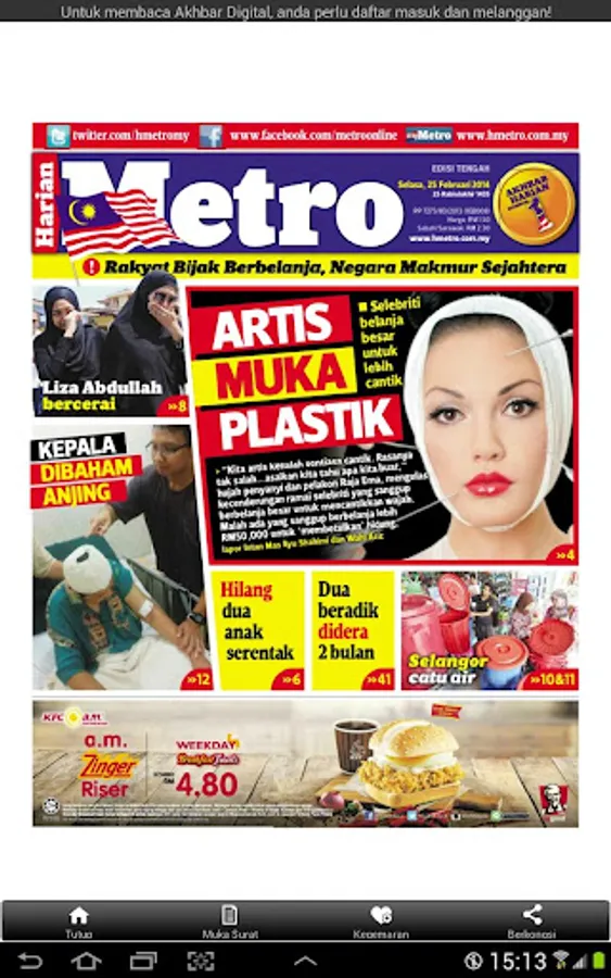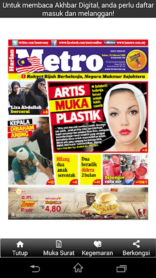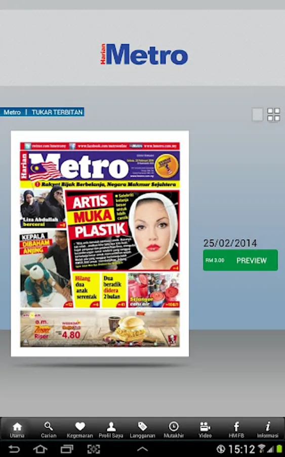 Harian Metro ePaper memiliki kandungan berita yang sama tetapi memiliki kelebihan lain daripada yang lain seperti
