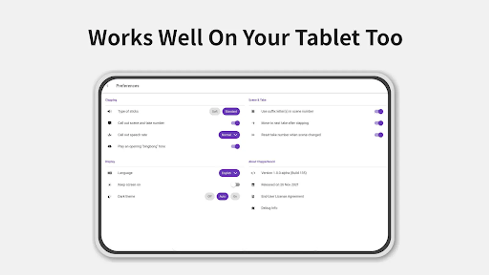 Transform your phone or tablet into a smart clapperboard, anytime day or night, and anywhere in the studio or out in nature. The resourceful camera slate help you (or the 2AC) record and manage the essential information for your next big production.
