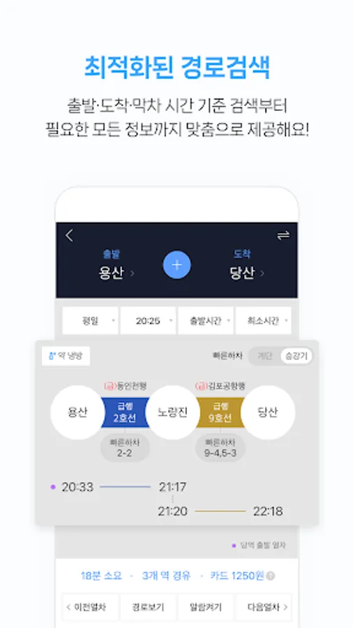 - Provides route details for convenient movement, such as quick getting off/transfer information, getting off gates, and setting walking speed for transfers.