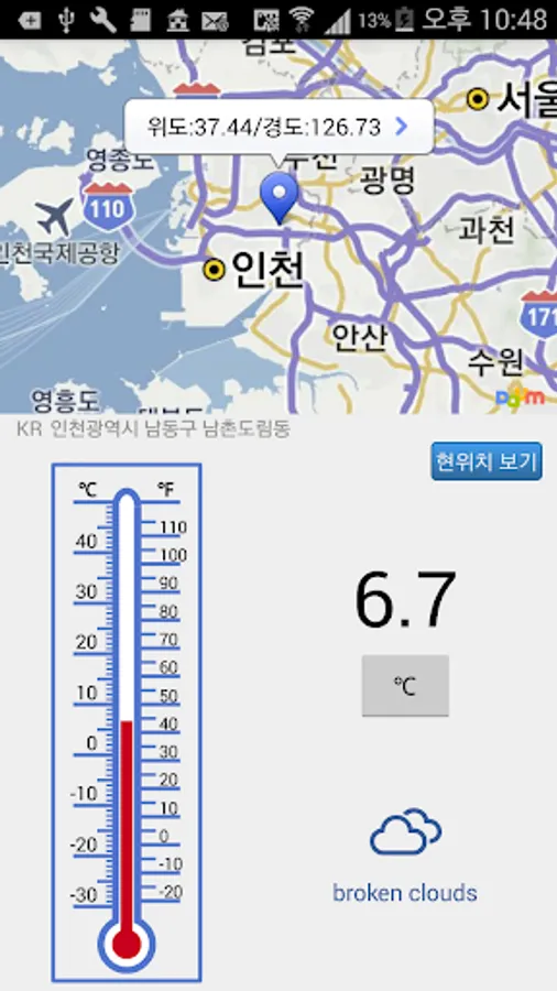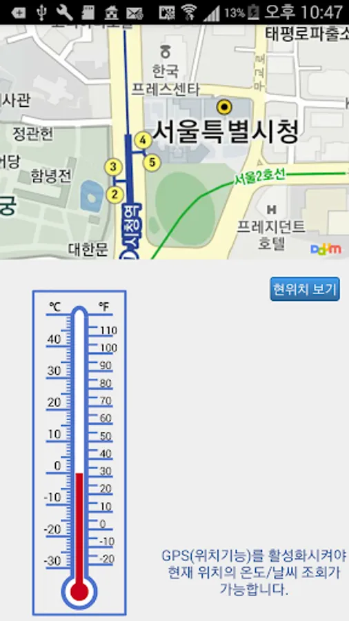 -When you run the app, the temperature and weather of your current location will be displayed.