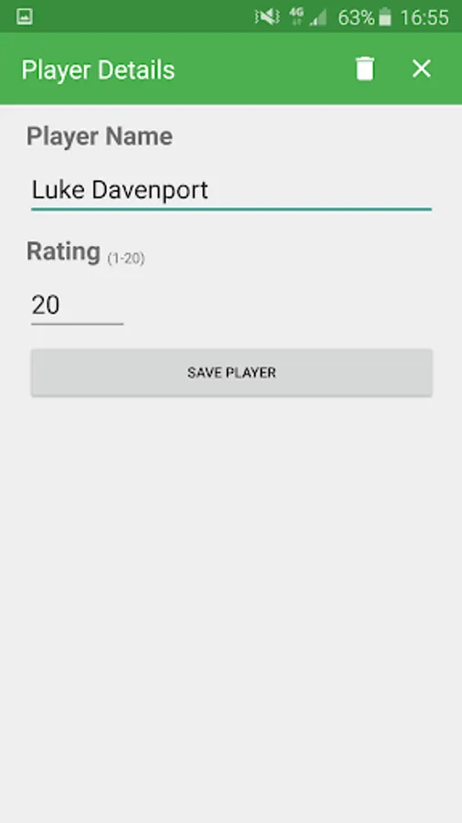 - Create players and save details for future use.