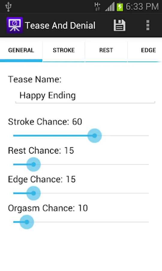 -Chances of receiving an instruction to Stroke, Rest, Edge, or Orgasm
