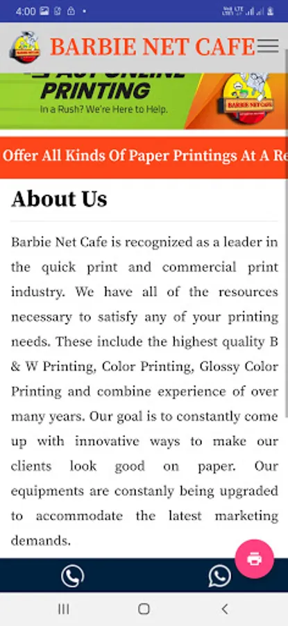 Barbie Net Cafe is recognized as a leader in the quick print and commercial print industry. We have all of the resources necessary to satisfy any of your printing needs. These include the highest quality B & W Printing, Color Printing, Glossy Color Printing and combine experience of over many years. Our goal is to constantly come up with innovative ways to make our clients look good on paper. Our equipments are constanly being upgraded to accommodate the latest marketing demands
