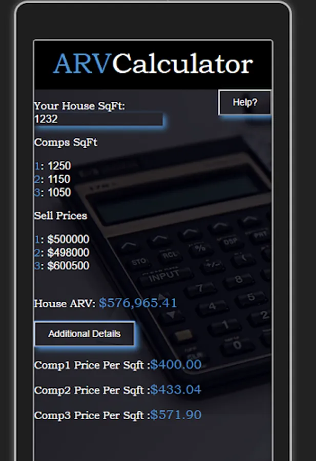 This app will help you calculate the ARV of your home based upon the camparables you find.