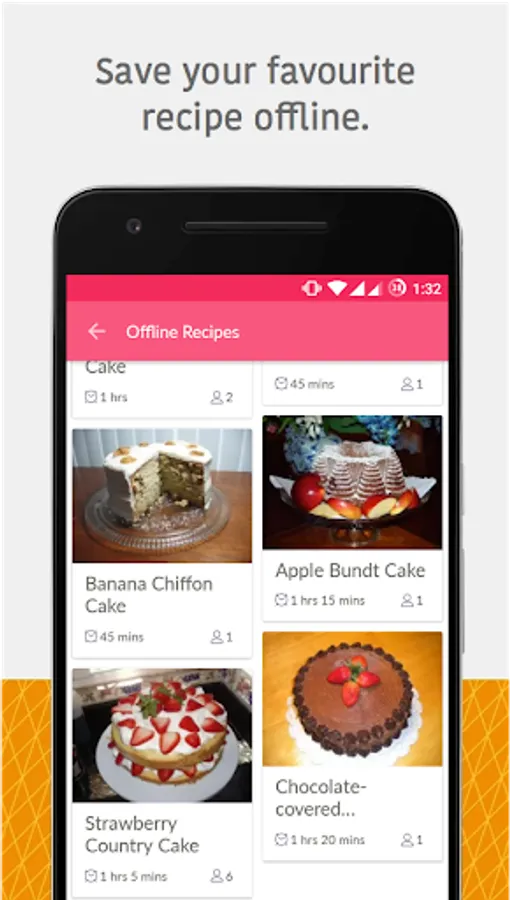 No internet while baking a cake don't worry we have a feature where you can save a recipe offline and use it when you want and access this recipes without internet. You can save as many cake recipes offline as you want. This app is easy to use and have easy cakes recipes which even a kid can make like he is playing a cooking baking cake game but in real. Easy to make recipes helps girls or any person who is baking for the first time so much easy that they would make some sweet cakes for their loved ones.