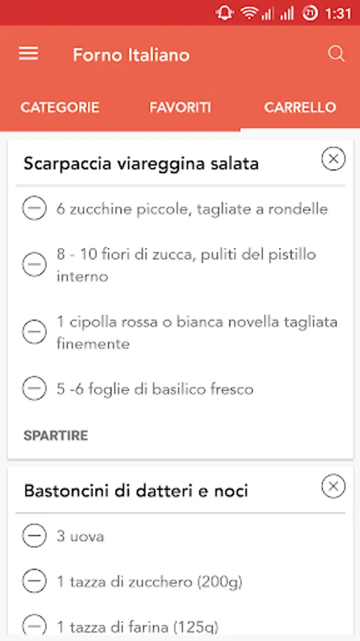 Forno Italiano has a very user friendly interface. Forno Italiano offers offline recipes. You can favourite recipes that you like so that you can easily refer to them when you plan to make them and if you do we also have got a feature to add ingredients into a shopping list so you don’t need a separate app for it. Recipes are divided into categories so they are easy to browse.