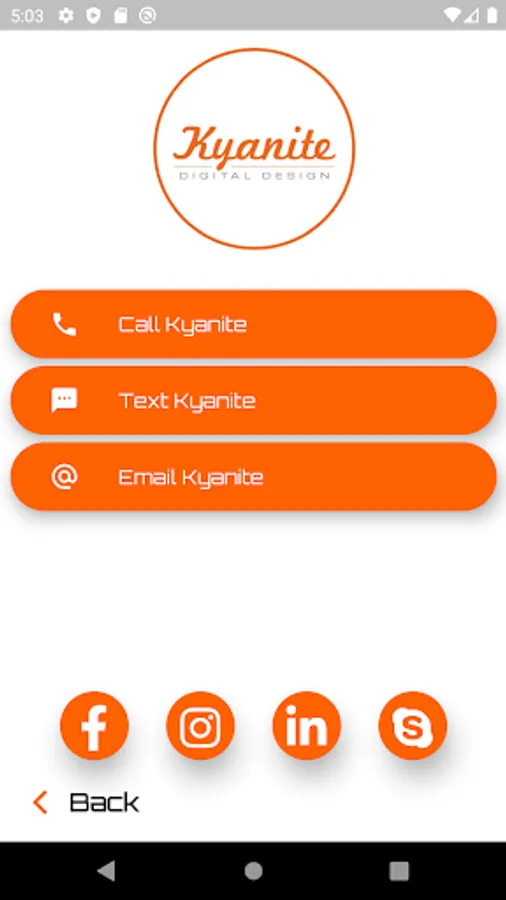 - Call, text, email Kyanite Digital Design via a touch of a button