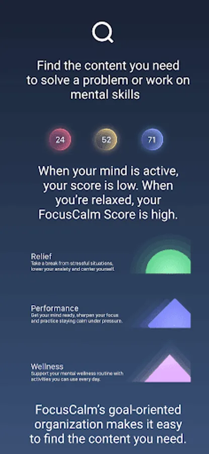 Through our meditations and expert-developed content, FocusCalm helps you LEARN how to put your mind in a FocusCalm state. Then, with our games and activities, you PRACTICE getting into that state more quickly, consistently and deeply. Over time, as you improve your skills, you can then CHALLENGE yourself to keep your FocusCalm high as you perform mental tasks that simulate stressful or difficult situations in life.