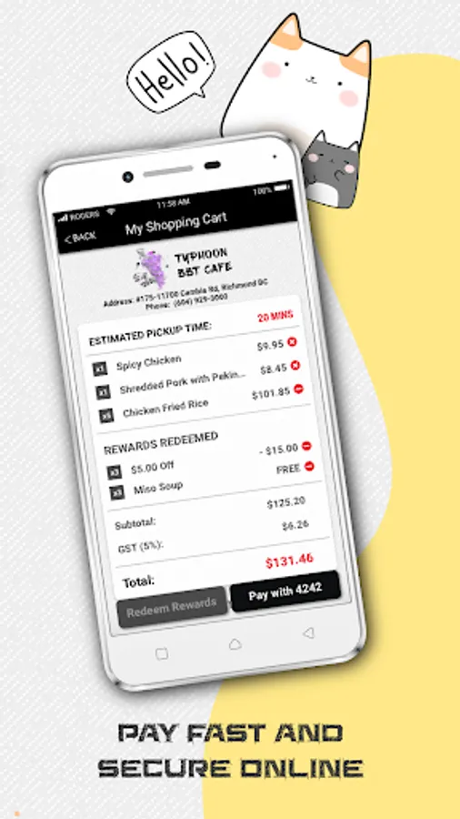 With the Typhoon BBT app, ordering your favorite food to-go has never been easier. Simply open the app, browse the menu, order with a click of a button and get notified when your food is ready. Earn and redeem points for rewards! Pay fast and secure online.