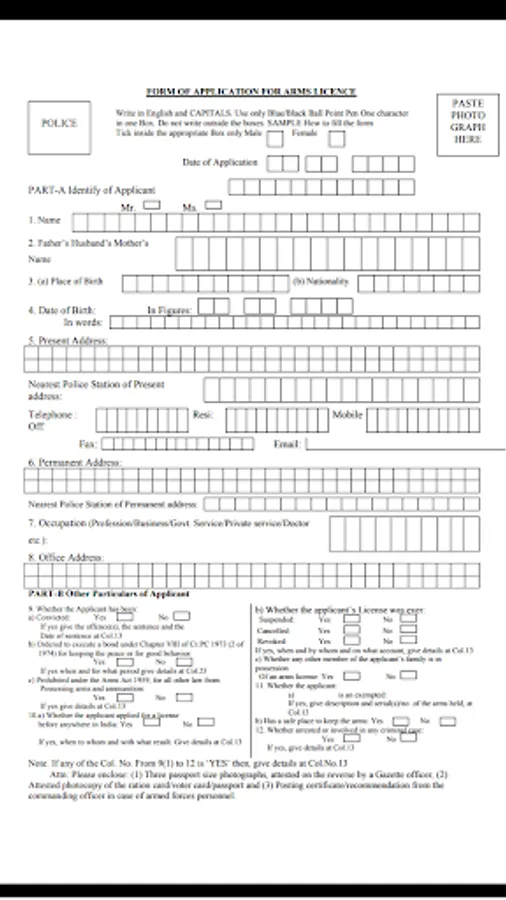 SMART TRICHY Home, Prohibition and Excise Department (HPED) FORM OF APPLICATION FOR ARMS LICENCE