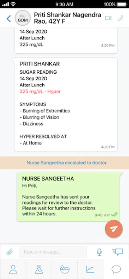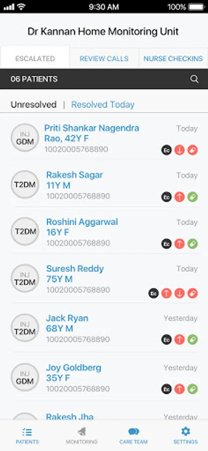 Reya Diabetes Home Monitoring helps nurses and doctors manage their patients on SMBG (Self Monitoring of Blood Glucose) remotely. Eligible patients are onboarded by a nurse on the smartphone app. They use the Patient App to add sugar readings. Nurses are immediately alerted of high or low sugar readings, allowing quick followup with patients. Doctors generate digital prescriptions for the patient remotely. The system enables care continuity and prompt feedback loops between the patient and their care team. Overall, this leads to better patient experience, and improved quality of care.