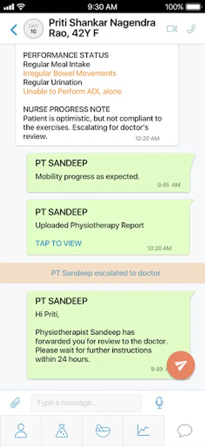 The Reya Orthopedic Post Surgery Monitoring App is a mobile-based solution to aid care continuity for patients recovering from Orthopedic surgery. Nurses and Physiotherapists perform guided clinical check-ins with patients to track recovery and complications in a structured manner. Doctors can review the added patient data and provide their inputs. It streamlines the care team’s workflow and maintains all relevant patient information in an easy-to-access record. It’s an intuitive, fast, and effective way to monitor a post-surgical unit.