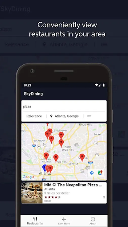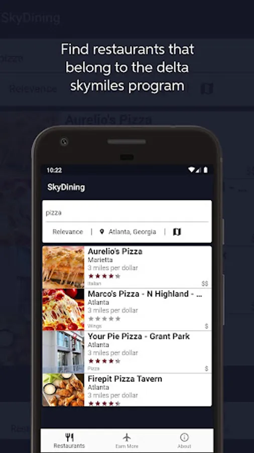 SkyDining is an unofficial SkyMiles Dining app that allows you to explore restaurants around you. Maximize your SkyMiles by viewing all the restaurants around you that can earn you rewards. View the menu, check ratings, and see all restaurant information directly in the app.