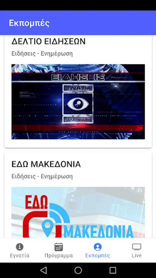 Download the app and enjoy your favorite shows broadcast on Egnatia TV, having access to the channel's live program, wherever you are.