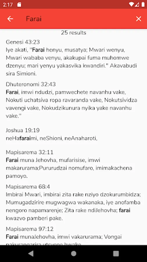 Search for a word or sentence in the bible and get straight to it. You can search in either the Shona version or the English version.