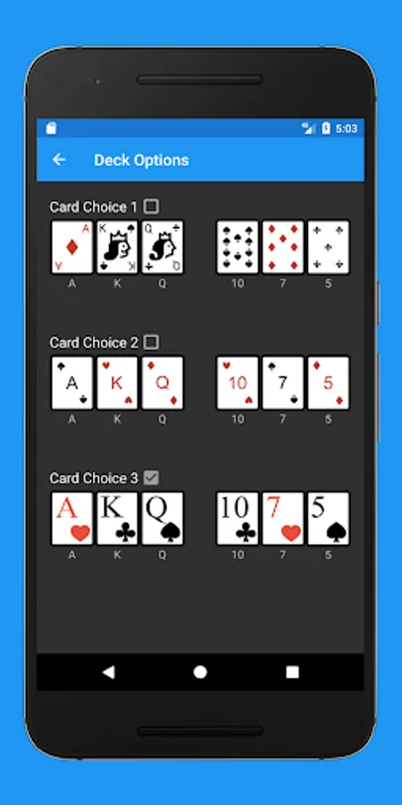 Three different card deck images to choose from: Not everyone likes the same look of the cards, choose whichever deck to play with that you like best.
