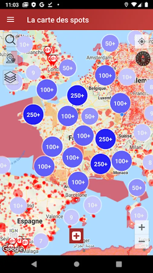 - List of spots around you - Tools: Weather forecast for the location, ICAO map, GPS information