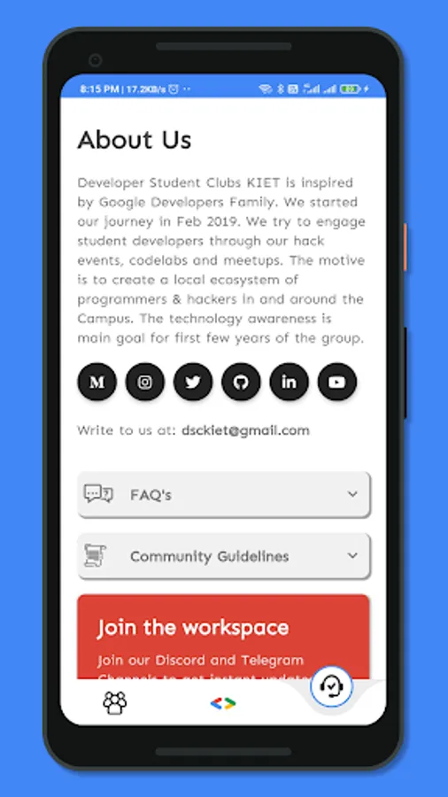 Developer Student Clubs KIET is inspired by Google Developers Family. We started our journey in Feb 2019. We try to engage student developers through our hack events, code-labs and meetups. The motive is to create a local ecosystem of programmers & hackers in and around the Campus. The technology awareness is main goal for first few years of the group.