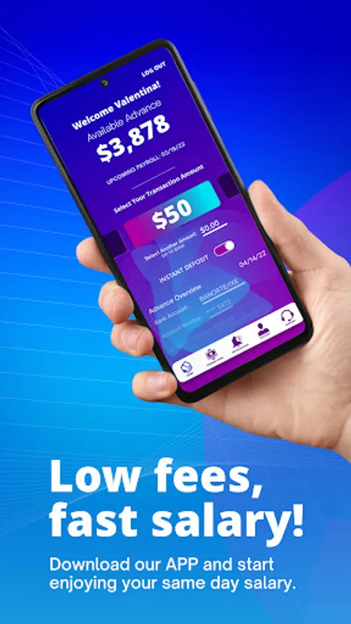 ERLI’s mobile app is intended to revolutionize how employees get paid by providing instant liquidity to anyone in the need of advancing their salary already earned to up to USD $200.00 per transaction at a cost of USD $3.99 per each advance. The amount of the advance plus de transaction fee will be reimbursed through the corresponding deduction in your next payday payment, so you will have your money to your disposal at the very same moment you need it without going through complicated processes.