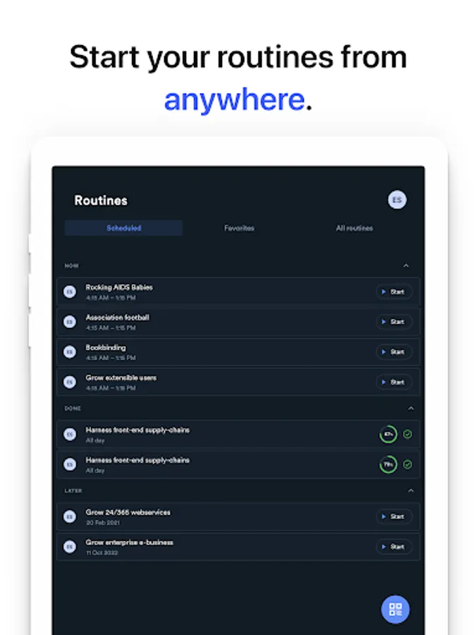 Launch any routine from your teams, with quick access to instances that you are scheduled for or to your favorite routines.