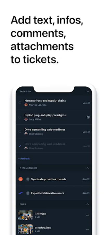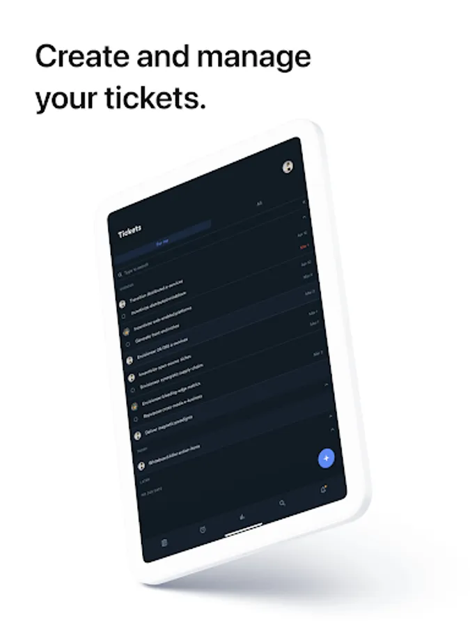 Open new tickets and update existing ones, adding anything from data, text, attachements, or comments. See and manage all the tickets you are involved with.