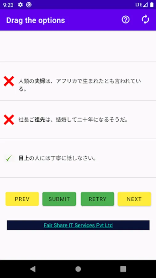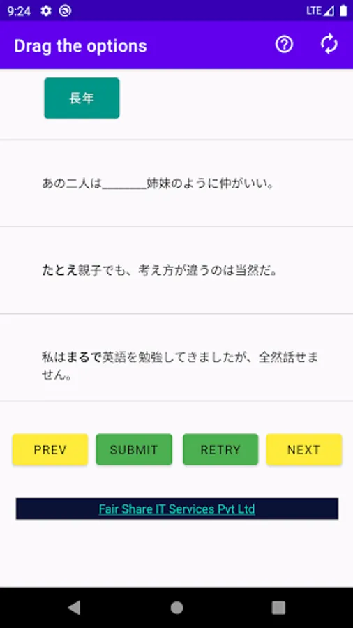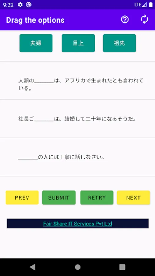 This app shall be used to organize online tests for school students. Module has ‘Drop the correct Options’ type of questions. Students shall be able to fill the blanks with options given. In this module students can check the answers, can navigate to the previous as well next screen. Also can restart the test. Module will have a “refresh data” button to load the updated questions. Teachers can modify questions using google sheet.