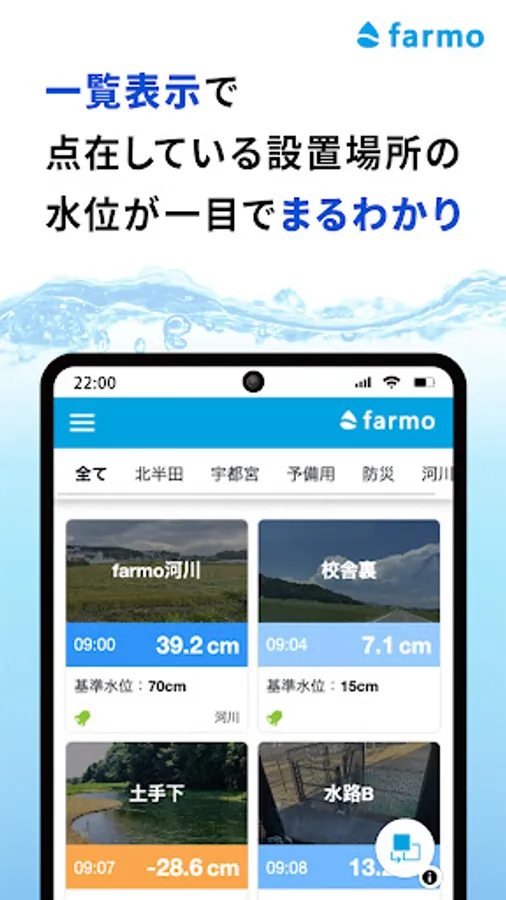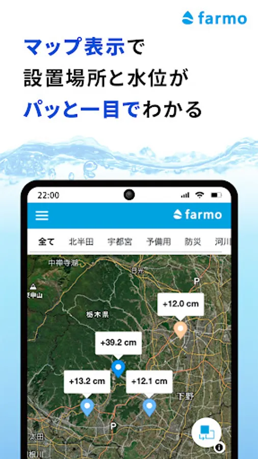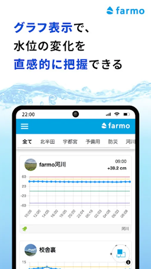 You can see the location of the sensor and the water level at a glance on the map display, and you can intuitively grasp the changes in the water level by checking the graph.