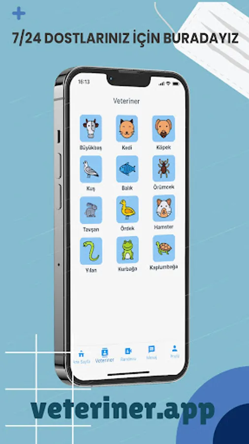 Let's take a look at the home page first. If you want to search for a veterinarian according to your pet, click on the "veterinarian" button on the main page. Animal categories will appear. Choose the one that suits you best from cat, dog, bovine, bird, fish, spider, rabbit, duck hamster, snake, frog, turtle. Thus, you will see veterinarians serving in that category.