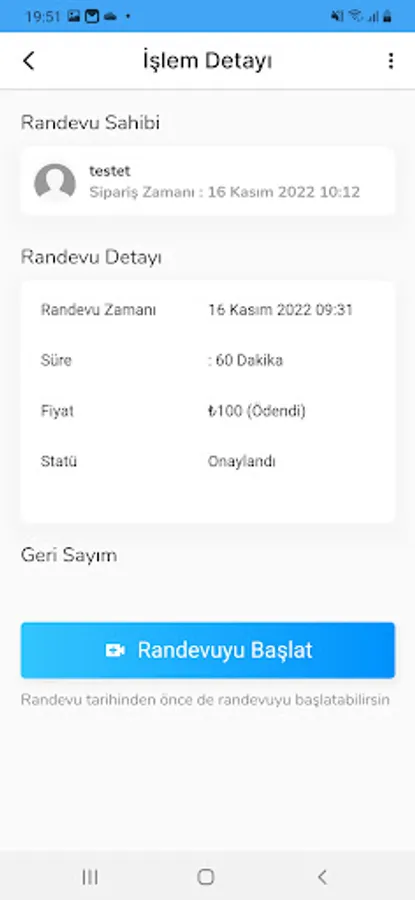 You must select the time to make an appointment by pressing the clock button at the top, either by typing it manually or by tapping on the clock. Then you press the OK button and go back to creating an appointment. You click on the price section below and enter the appointment fee, with a minimum of 50 TL and a maximum of 1000 TL. You choose your appointment time from the place that says duration at the bottom. If you want to make a change in the date, you can press the date button below and rearrange the date.