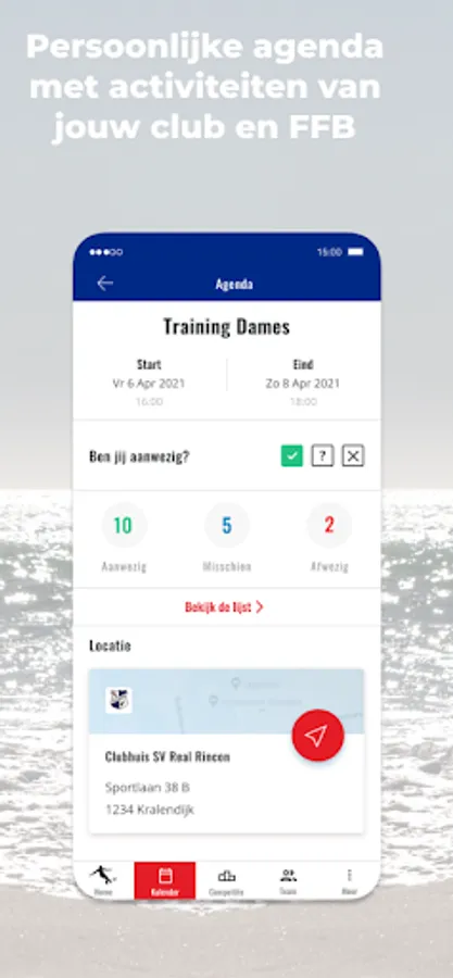 Personal calendar with matches, trainings and events of your team.