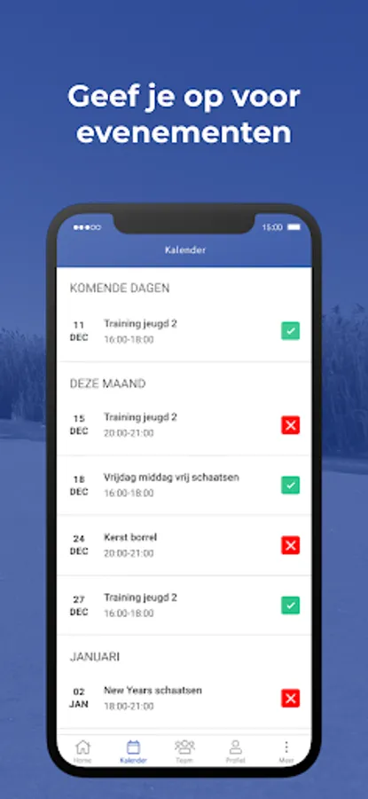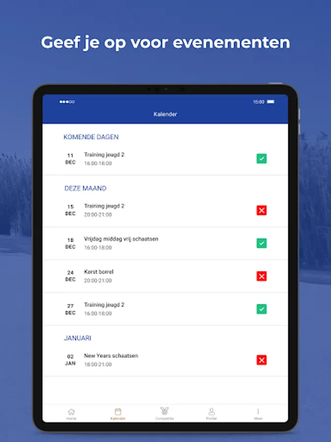 - Geef jouw aanwezigheid door voor wedstrijden, trainingen en evenementen.