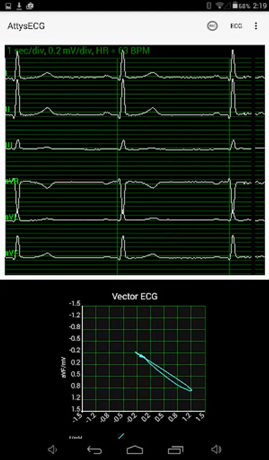 - Vector ECG mode which displays the electrical heart axis in an intuitive graphical way