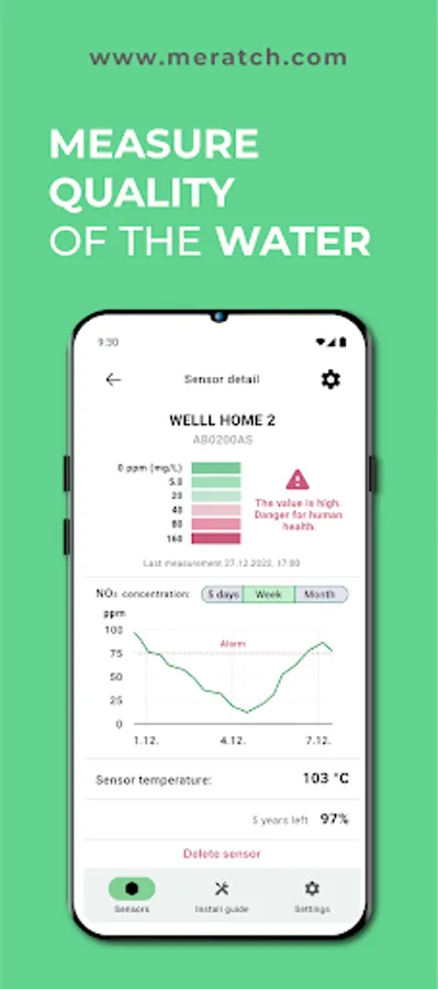 No matter where you are located, our app ensures you're never more than a click away from your water data. All you need to do is connect your IoT device (MERATCH water level or water nitrates / nitrites sensors) with the MERATCH app.