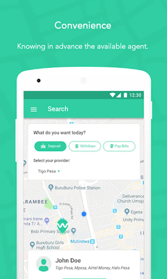 -Convenience: Time Saver for both Agent and User, Fast service delivery from knowing exactly when and where to get mobile money service at any given time and/or area. Agent provides exact service available only