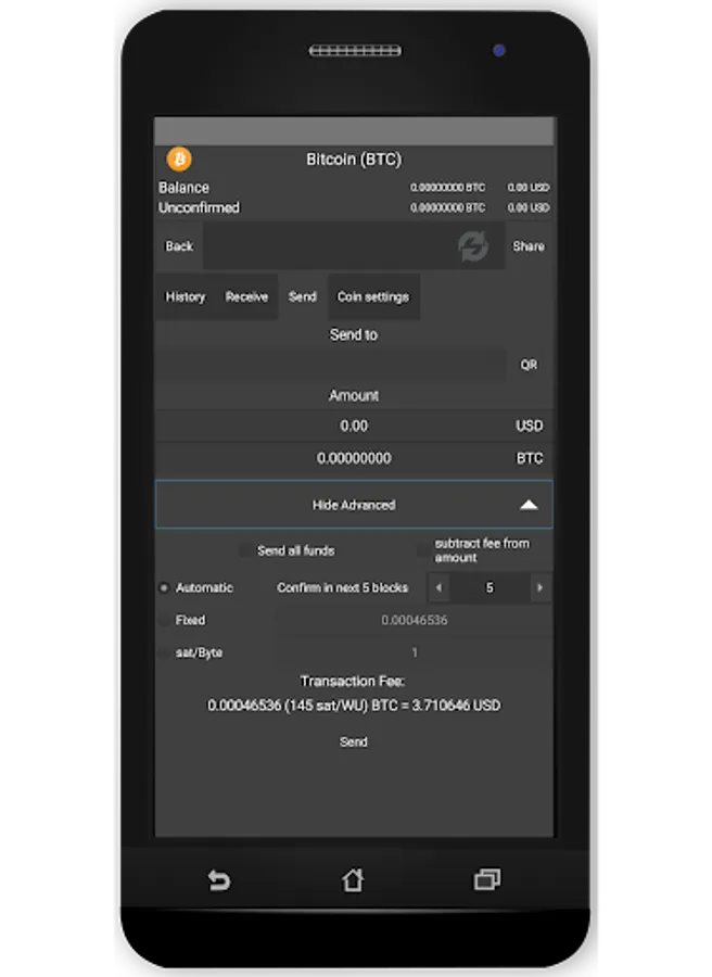 - Carefully thought out default settings allowing everyone to easily send and receive cryptocurrency, but with advanced options allowing for full customizations of transactions, like setting custom fees fitting to current network traffic