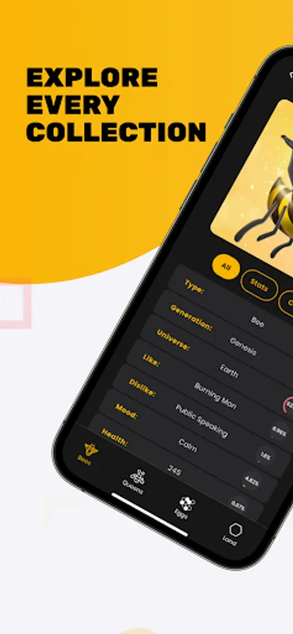 EXPLORE EVERY COLLECTION: You can easily scroll through every NFT or search for a specific NFT in any Honeyland collection. The main view allows you to see important NFT information and the detailed view shows every piece of metadata and additional information about each NFT.