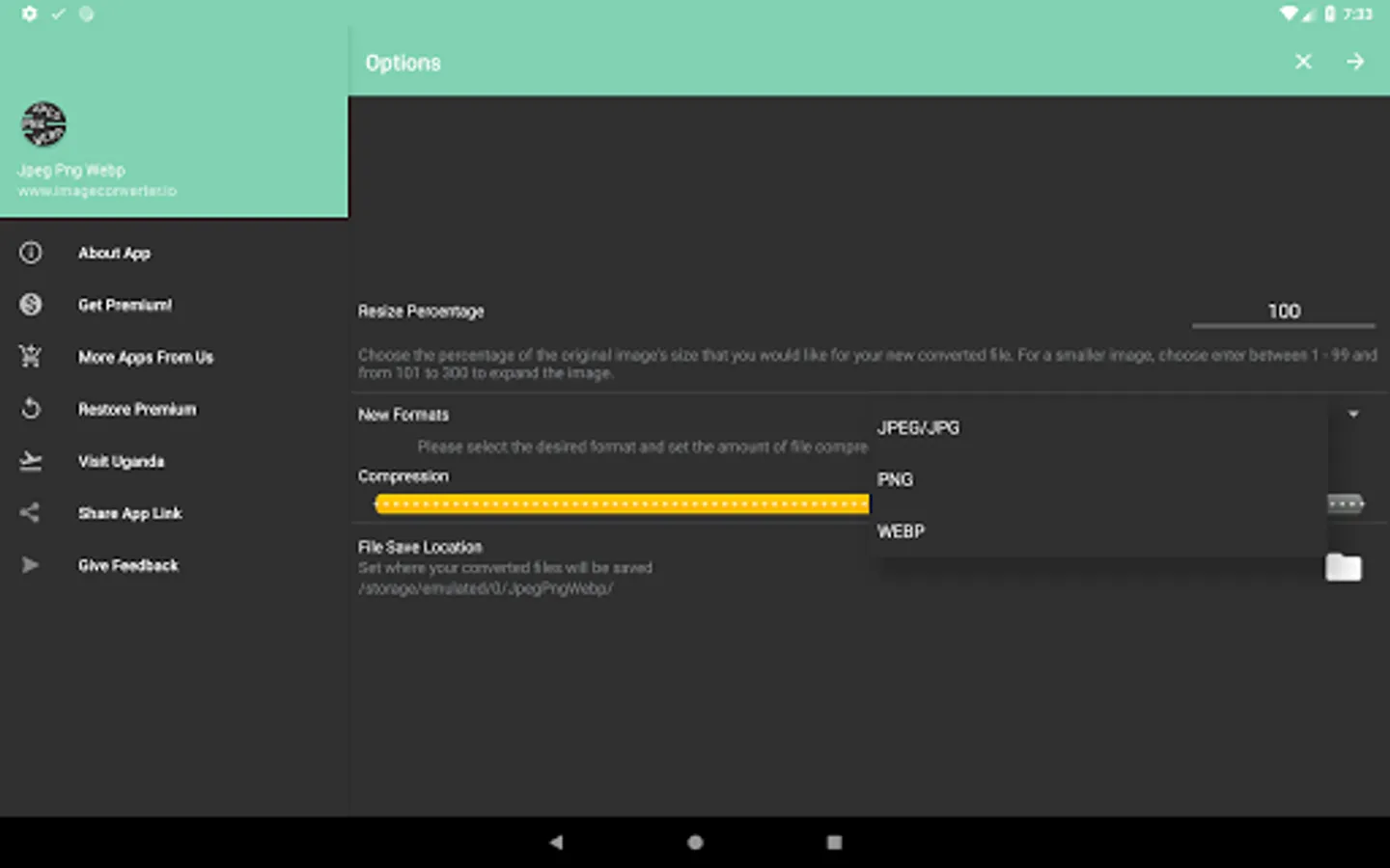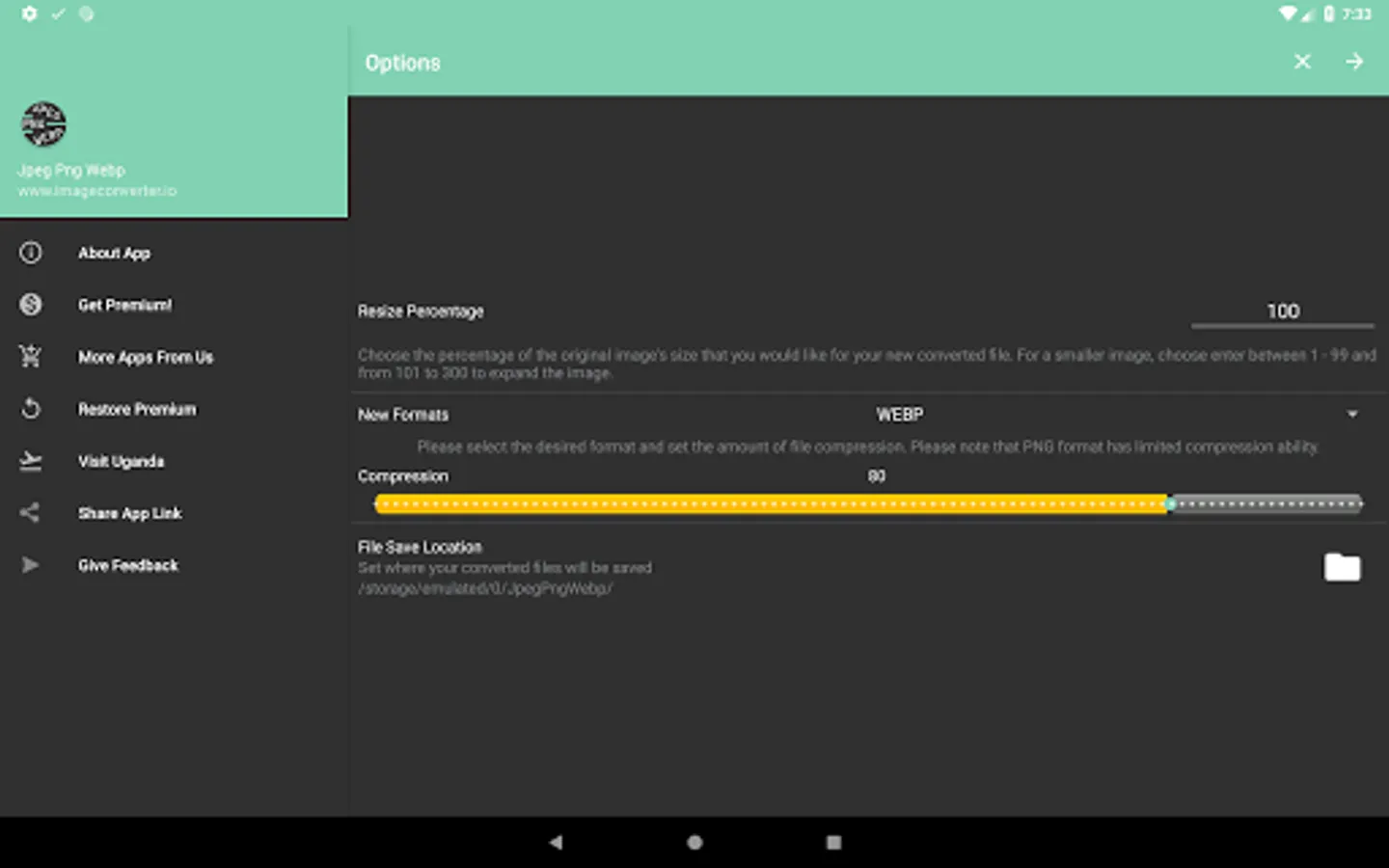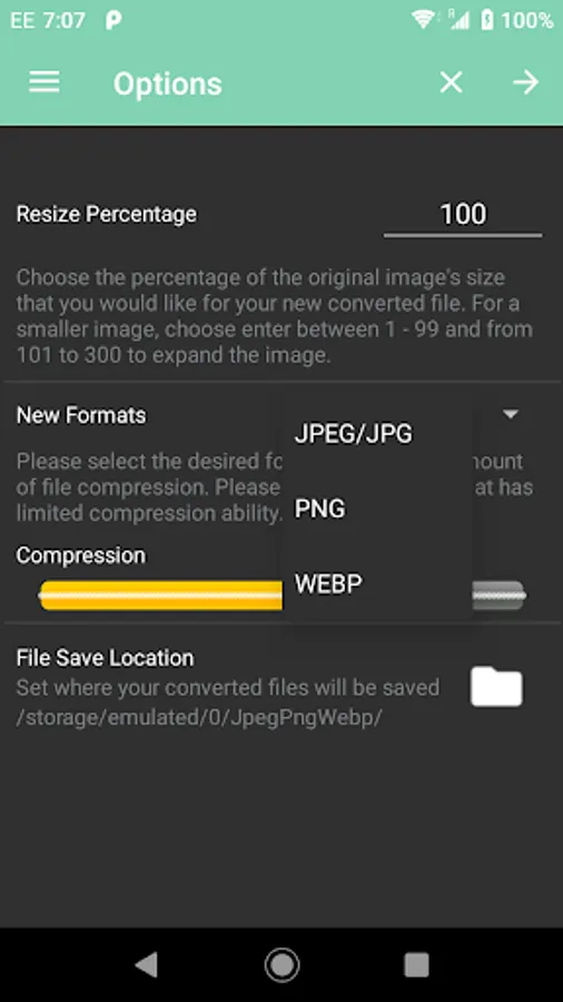 Your number one app for image file format conversions for these common image file formats: BMP, GIF, JPEG, JPG, PNG , WEBP.