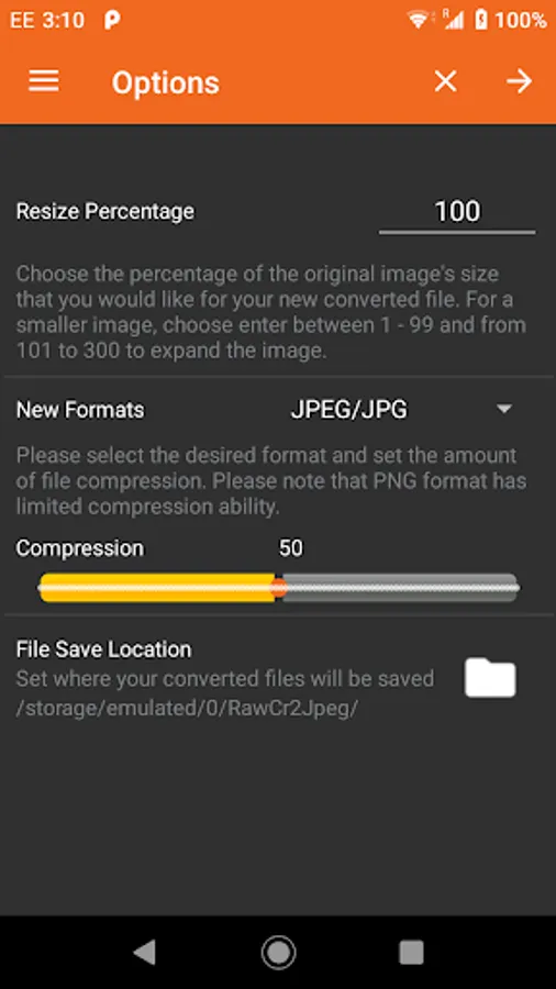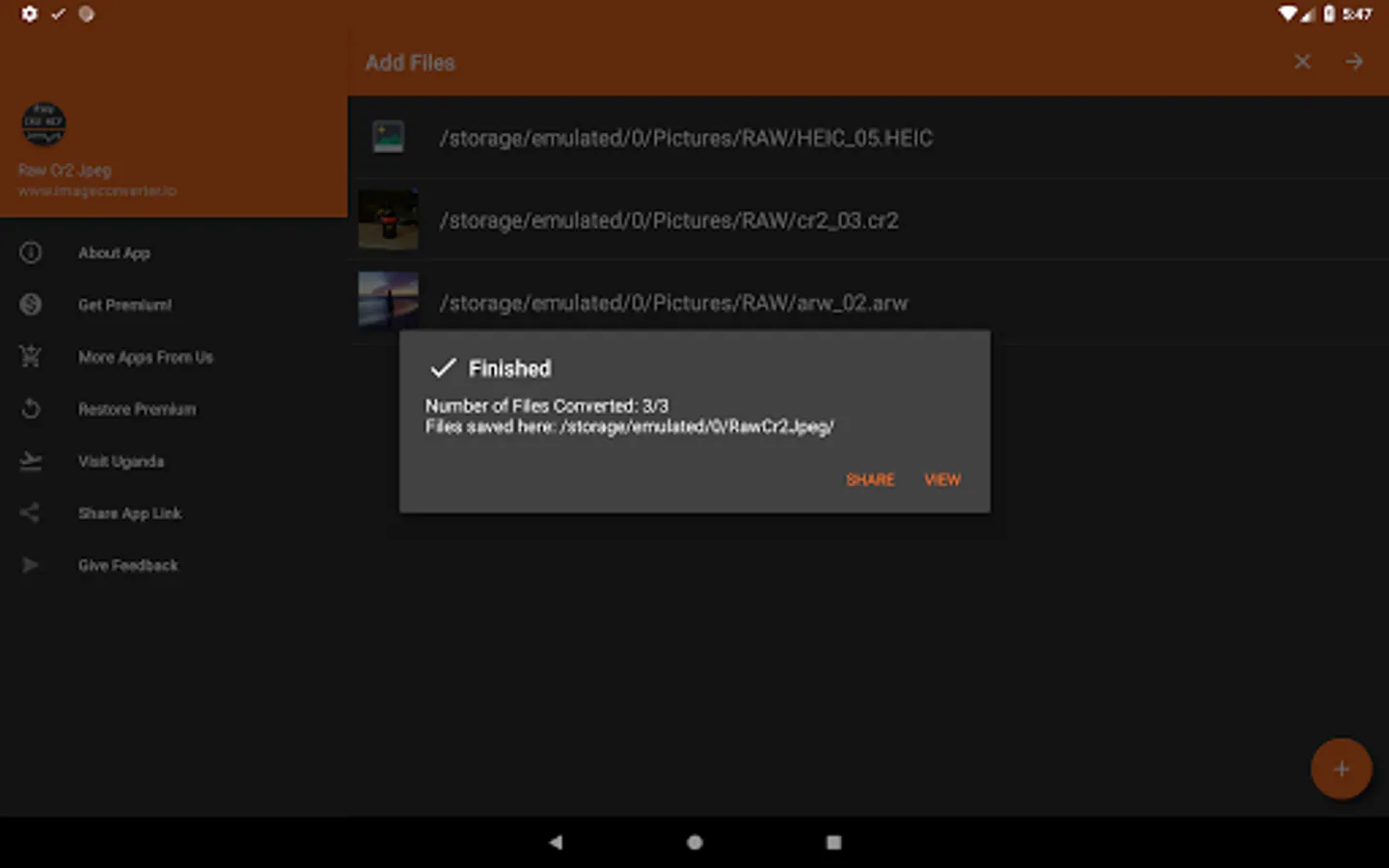 Convert nearly all types of Raw Image files to JPEG/JPG, PNG or WEBP with this amazing app.