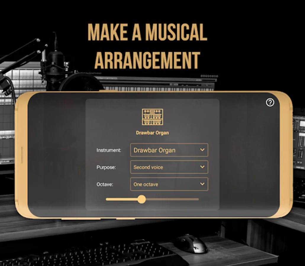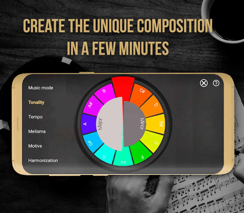 With our application you can automatically compose unique music or make ringtones. And what's more, there is no ownership of it. For example, various music studios will be able to find new melodies, ringtones and styles for a suitable price. What do you need to make sounds? It's simple. To do this, you do not need to know musical notation or study at a school. Just download our music maker, open it on your gadget and start creating in virtual tuner.