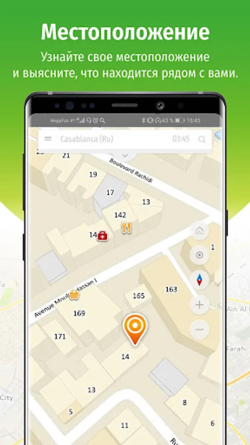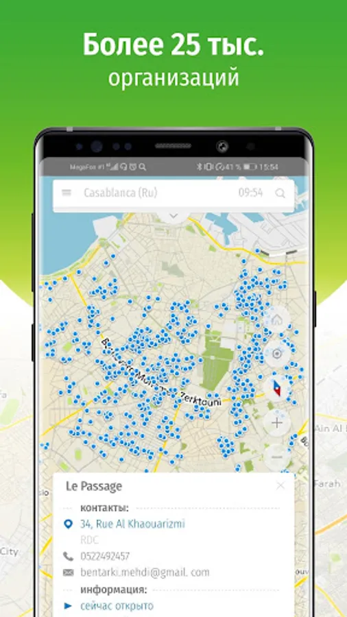 - a smart search will help you find any organization, for example, write in the search “hotels bouulevard mohammed” and you will see all the hotels on Muhammad Boulevard;