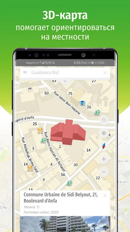 CityInfo - A constantly updated map service that allows you to get detailed information about the administrative division, organizations and their fields of activity, streets and buildings on a map of the city of Casablanca.